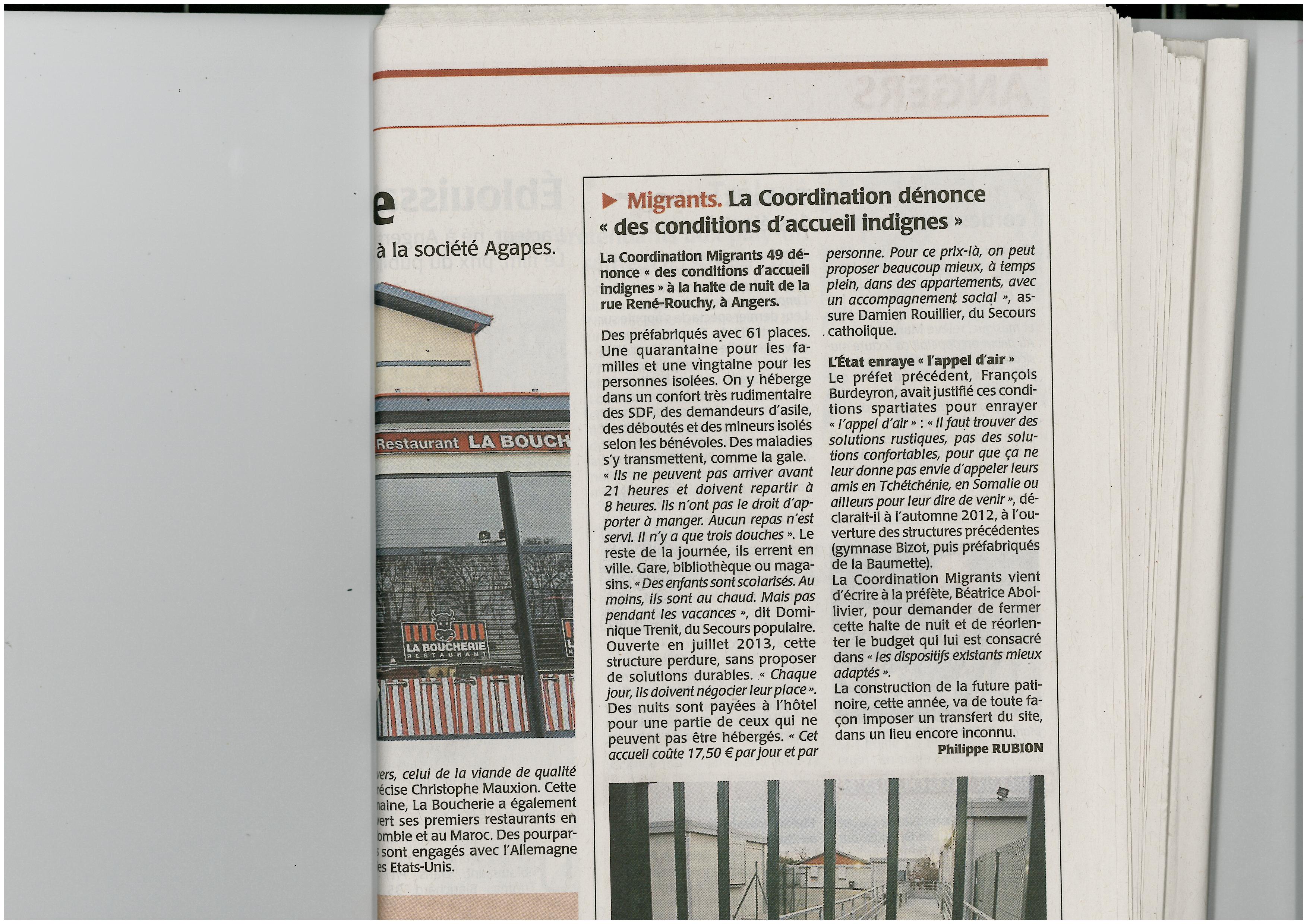 Les hivers se succèdent et les associations de la Coordination Migrants 49, soutenue par le collectif ALERTE, s’inquiètent et dénoncent vivement les conditions de prise en charge des personnes sans domicile stable dans le cadre quasi exclusif de la halte de nuit de « Rouchy ». Elles ont interpellé par courrier, une nouvelle fois Madame le Préfet avec force et vigueur sur ce dispositif de mise à l’abri qui ne répond pas aux obligations légales en matière d’hébergement d’urgence.