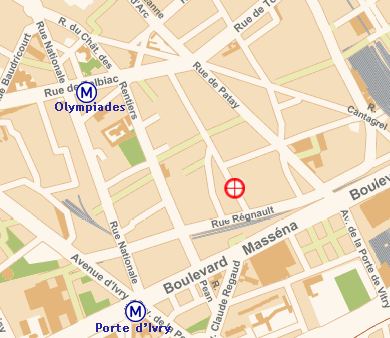 Par la ligne 14 du métro, station Olympiades ou par la ligne 7, station Porte d'Ivry.